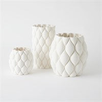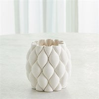 The Pillowed Printed Vases boast a stylish ceramic finish in matte white, exuding contemporary vibes. Made using cutting-edge 3D printing, these vases add a one-of-a-kind artistic flair, ideal for sprucing up any room!