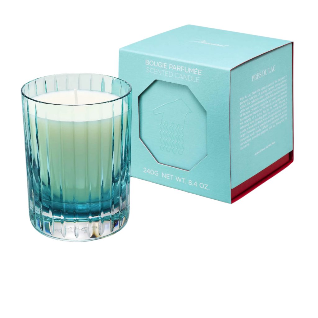 Près du Lac from the Baccarat 4 Elements collection brings the calm of a sunny lakeside with fresh green tea, mint, and musk scents. Made from French vegetable and mineral wax, it comes in a recycled Baccarat crystal holder that fills your space with refreshing, joyful vibes.