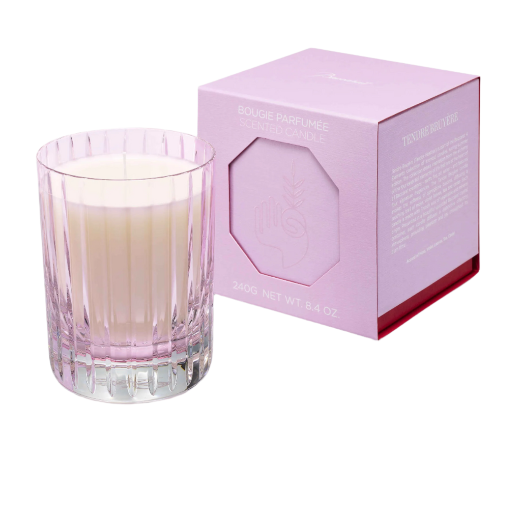 Tendre Bruyère is a playful spring-summer candle from Baccarat’s 4 Elements collection. It blends moss, violet leaves, tea, and cedar to create a soft, fresh scent. Made with French vegetable and mineral wax, it comes in a charming upcycled Baccarat crystal container that brightens any space with its joyful aroma.