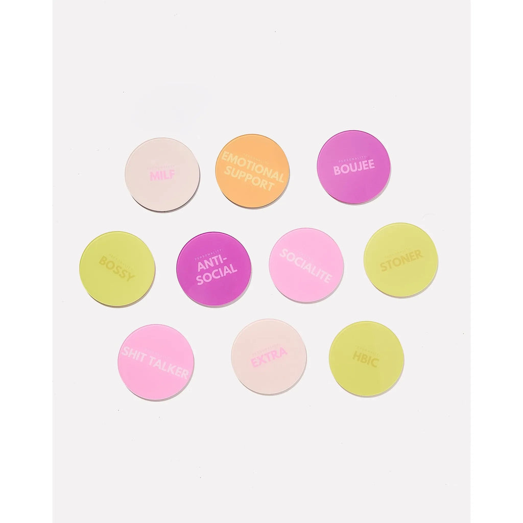 This unique set of 10 coasters features 20 hilarious personalities. Assign one to each guest to match their traits- fun, durable and perfect for laughs at your next party! Each coaster features a personality trait on the front and the back- double the designs= double the fun!