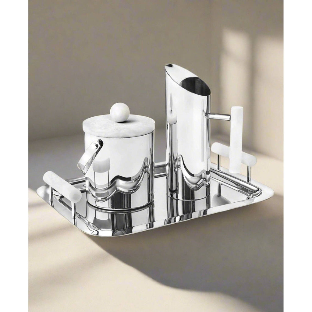 Elevate your bar collection with our Azura Matte White Resin & Stainless Steel Ice Bucket. Meticulously crafted from premium stainless steel, accented with resin detailing, and polished to a mirror finish, this hand-crafted piece showcases both craftsmanship and style. Its sleek, sophisticated design makes it a must-have for any barware collection.