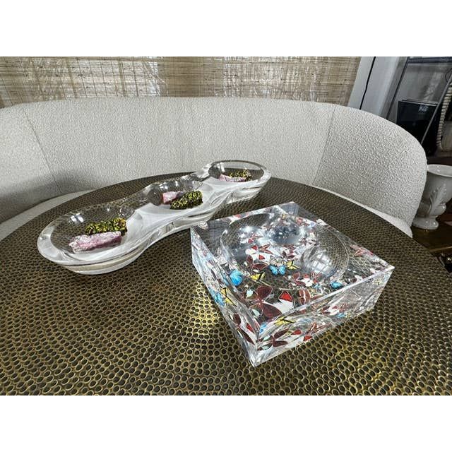 Bright, sculptural, and endlessly versatile our White Lucite Triple Candy Bowl reimagines a classic design in crisp white acrylic. Crafted from premium, hand-polished lucite, this three-section bowl combines elegant simplicity with modern function, making it a stunning addition to luxury homes, coastal retreats, private yachts, and boutique resorts. Striking even when empty, this white acrylic bowl is perfect as a catch-all for keys, jewelry, or office essentials, or as a serving bowl for wrapped candies, nuts, and small treats. Its glossy finish and substantial weight give it the presence of fine glass with the practicality of durable lucite sleek, modern, and built to last. Ideal for gift boutiques, interior designers, and resort retailers, this triple candy bowl offers clean lines, subtle glam, and year-round gifting appeal. Product Details • Material: Thick, hand-polished acrylic (lucite) • Color: White • Triple-section design • Multi-use: candy dish, catch-all, or decorative centerpiece • Care: Hand