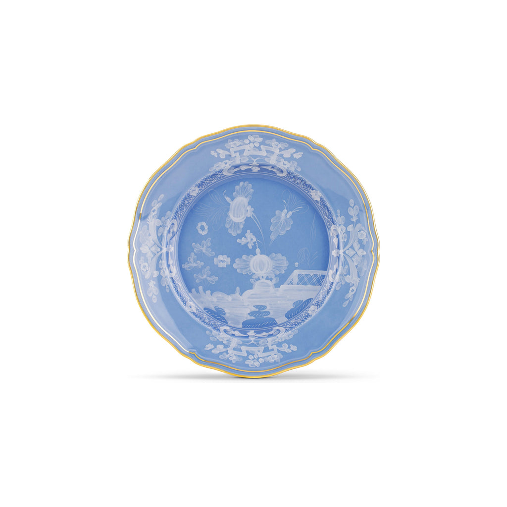 Lively, captivating, alluring. A stylized flower, called "garofano" - carnation - in the Florentine ceramic tradition and reimagined by Gio Ponti in 1946, brings back nostalgic thoughts in the Oriente Italiano Collection. This is the backdrop of the Oriente Italiano Collection on the Antico Doccia shape, where the airbrush method and color ingenuity come together to form a stunning design.