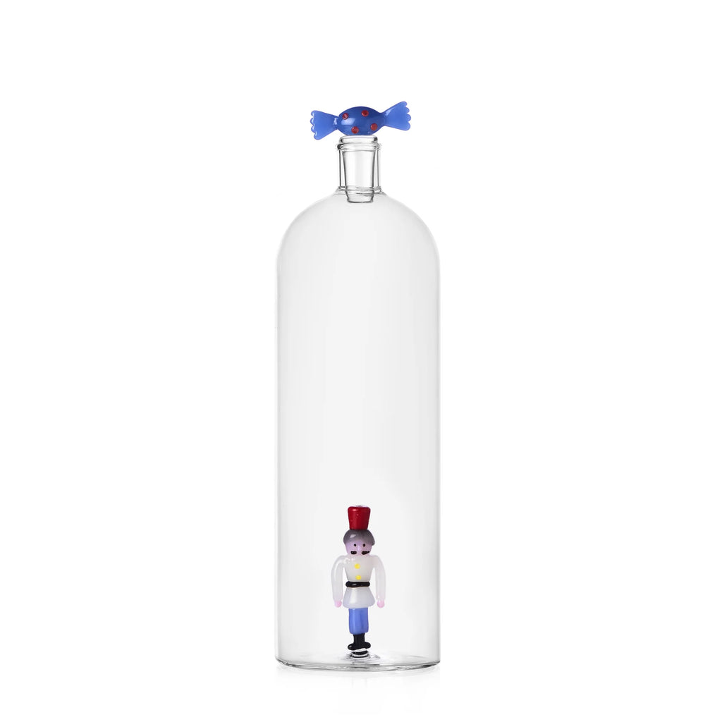 The Ichendorf Nutcracker Bottle with blue candy and little soldier, crafted by Alessandra Baldereschi, captures the festive spirit of Christmas in a charming glass design. Made of sturdy borosilicate glass, this lightweight bottle features a transparent form showcasing a whimsical soldier figurine inside. Drawing inspiration from the Nutcracker ballet, it turns an ordinary bottle into a delightful stage where creativity and craftsmanship come alive.