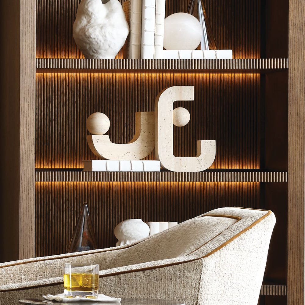Unfilled beige travertine sculptures capture the moment when motion comes into balance. Display at different angles to create visual interest, or even use as bookends.
