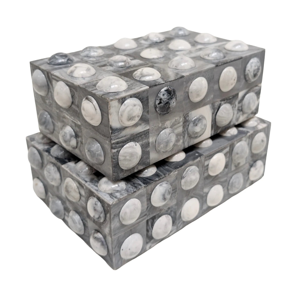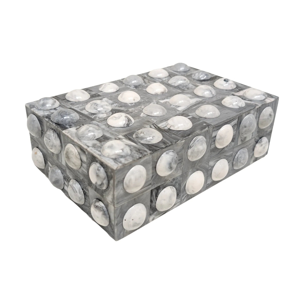 This unique box, handcrafted from genuine bone and inlaid with unique gray and white marble patterns, adds a touch of artistry to any space. Its marbled grid design blends elegance with timeless texture.
