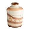 The layers of color through the ceramic pair of Kota vases resemble layers of earth forged over thousands of years. Strong enough to stand on their own or be adorned with fresh or faux foliage, these versatile vases will make a statement in any atmosphere they reside.