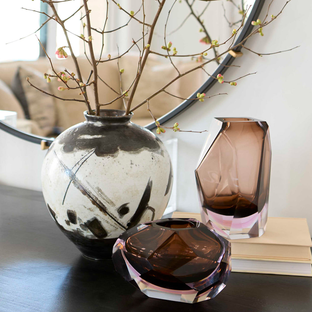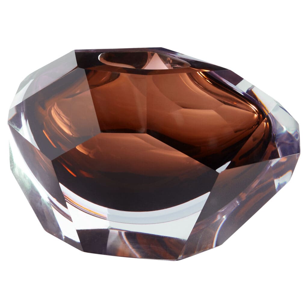 The MacAllen collection is a tribute to the rich heritage of whiskey, embodying the exquisite craftsmanship of hand-blown cased glass that captures the essence of wood and spirit. The collection’s faceted design is reminiscent of cut jewels, imbuing each piece with a sense of vibrancy and dynamism through the captivating interplay of light refraction. The smooth whiskey color further enhances the collection’s luxurious appeal, evoking the warmth and sophistication of aged spirits. Available in two sizes.