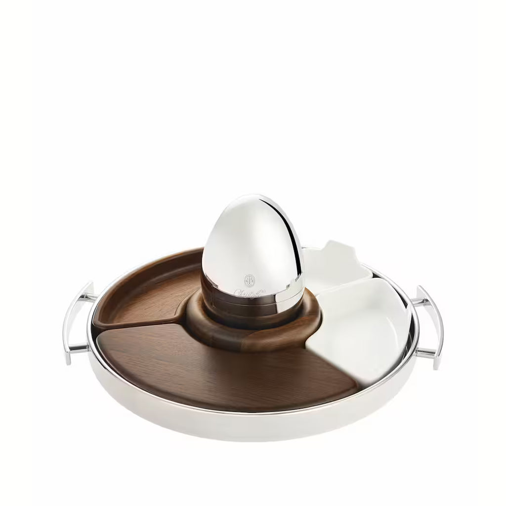 The Stainless Steel Petit MOOD tray completes the range to create moments of pleasure and conviviality around coffee. The tray can be placed wherever you like, on a coffee table, a bar, or a terrace. It is designed to accommodate MOOD Coffee in its center and offers sweet treats, snacks, and more in its wood and porcelain containers.