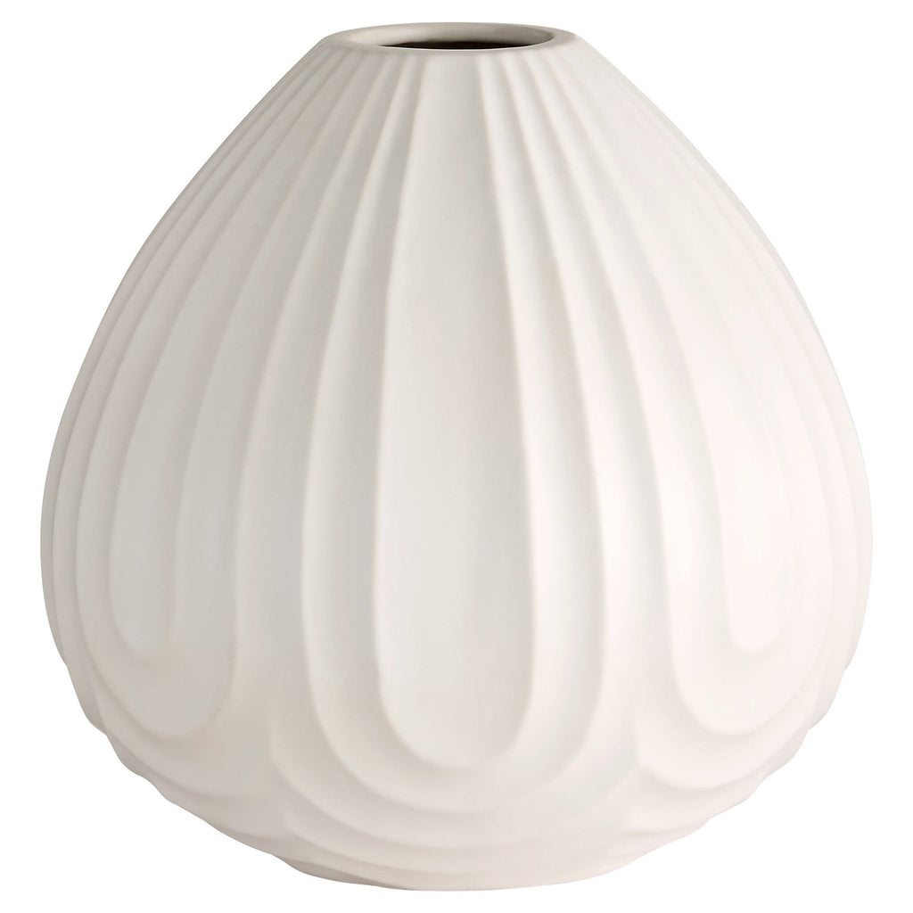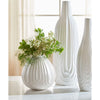 The Nigel Vase, made of earthenware, boasts a polished white coating that beautifully complements any interior design. Its embossed pattern adds a refined and eye-catching touch. Offered in various sizes and styles, it can be used as a standalone item or grouped for a layered look, bringing contemporary sophistication to any space.