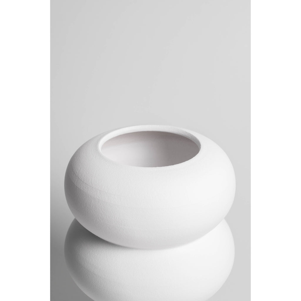 Handcrafted white ceramic vase with a minimalist ripple design, made in Portugal in small batches. Each piece is unique, featuring the subtle character marks of artisanal production. Waterproof and versatile—display fresh or dried flowers, or showcase it as sculptural home décor. Measures 15 x 24 cm. Sustainably packaged in recyclable materials.