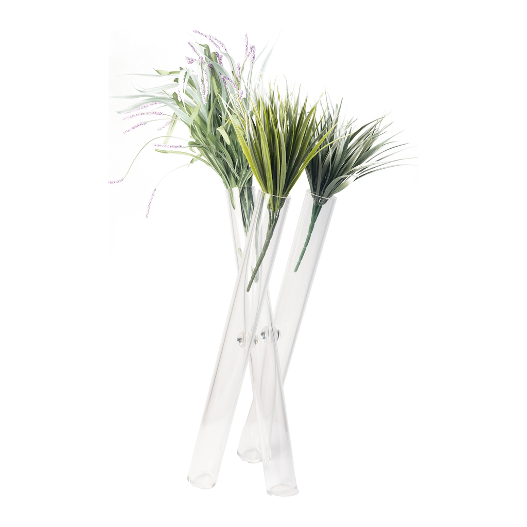 Cheer up any space with our elongated and chic flower vase. This vase consists of three tall cylinders that join together creating an elegant and modern look. It may be used to put any type of plants and decorate any contemporary home.