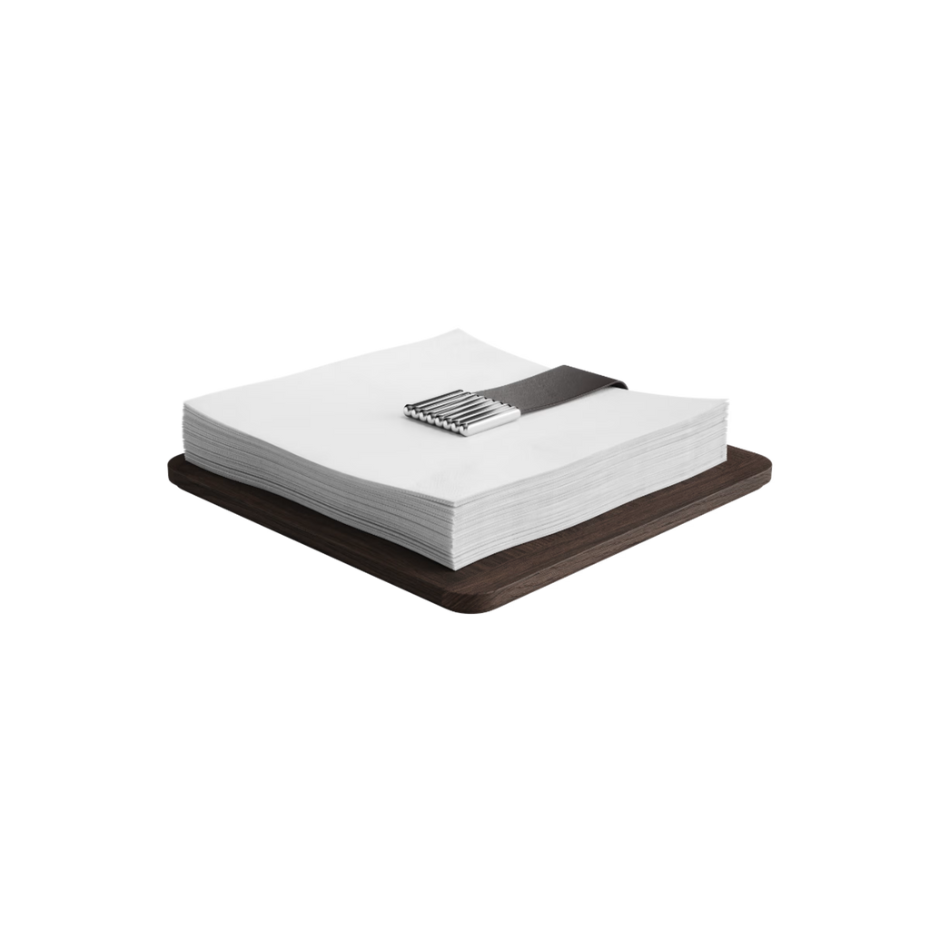 This elegant napkin holder is part of Georg Jensen’s iconic Bernadotte range. A mirror-polished stainless steel buckle secures napkins on a smoked oak base, blending sophisticated form with practical function.