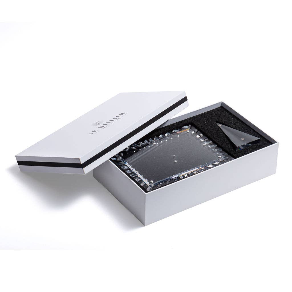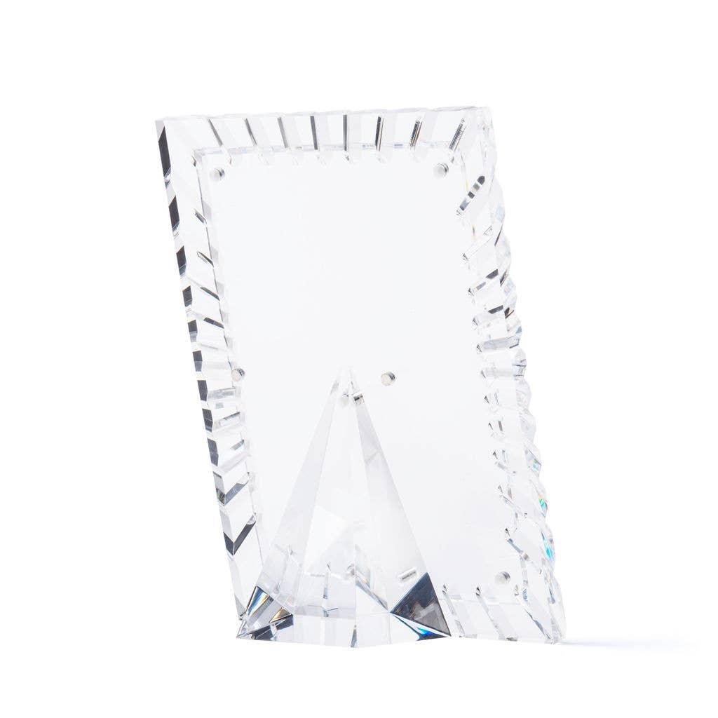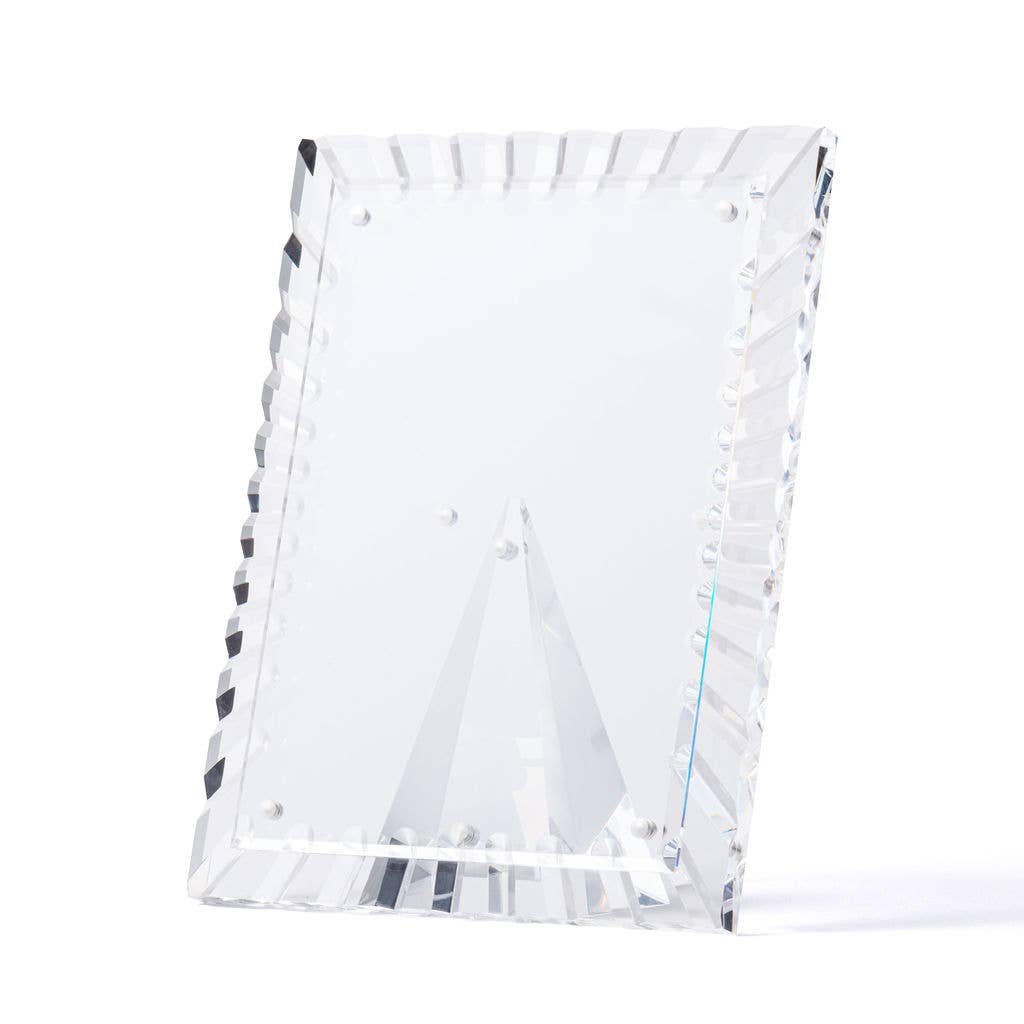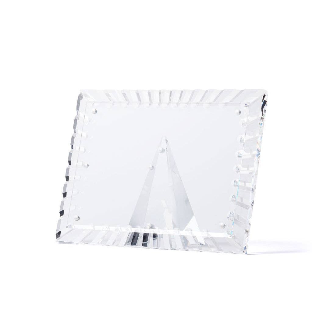 The Crystal Clear Acrylic Burst Picture Frame from our NoHo Collection is crafted from premium-quality acrylic with hand-cut beveled edges, ensuring your cherished photos are displayed beautifully. The magnetic pyramid stand allows for versatile vertical or horizontal use, making your photos look stunning from any angle. Each frame arrives in elegant gift packaging, perfect for any occasion.