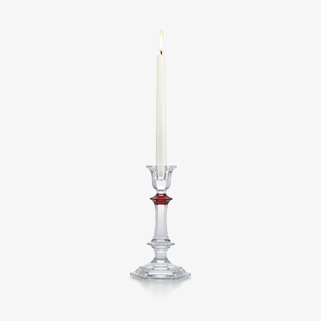 The Harcourt candlestick is boldly reinvented, now featuring Baccarat's signature red, a symbol of passion. Known as the collection of princes and greats of this world, Harcourt has graced the most prestigious tables around the globe since 1841. The candlestick's graphic silhouette is now adorned with a red button, enhancing the moment with a touch of refinement and radiance. A celebration of light and sharing, Harcourt embodies the very essence of Baccarat’s joie de vivre.