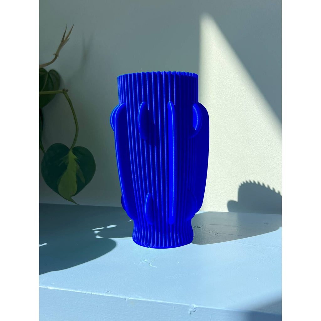 Discover the perfect blend of artistry and sustainability with this striking 3D-printed vase, crafted in Montreal by Studio Maracuja. Featuring an innovative Appalachian-inspired design, it's produced from eco-conscious PLA—a recyclable thermoplastic sourced from renewable materials. Insert a glass vessel inside to achieve complete waterproofing, making it both functional and beautiful. This sculptural piece demands minimal care: simply rinse gently with cold water and a soft brush to preserve its pristine finish