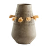 The Retting collection of earthenware vases features a jute rope tassel embellishment that honors the process of harvesting the natural fiber. Vertical hash marks are hand carved in threes along the sides of the cone-shaped body. Finished in taupe grey, the Retting vessels deliver neutral tones and a smooth contour. Utilize the energy of the Retting collection by displaying in any living area, dining room or bathroom. Available in two sizes. Not water-tight.