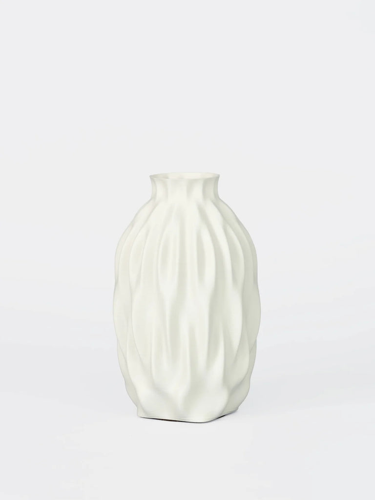 The C#9 Vase is defined by dense, sculptural folds that expand and contract like a resonant soundwave. Its compact, grounded form emphasizes depth and rhythm, creating a strong visual presence that feels architectural and intentional.