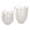 Simply stunning as a display or create a floral masterpiece with this set two frosted glass vases. Includes hand-crafted clear glass textural detailing on the outside for visual interest. Sizes: