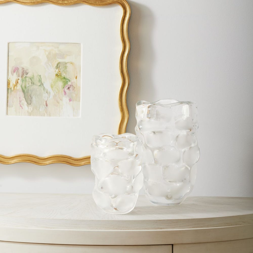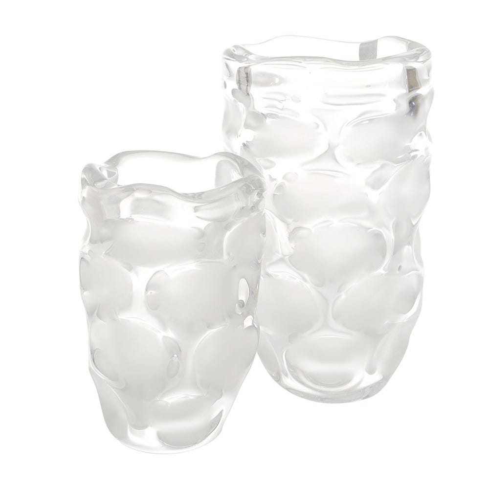 Simply stunning as a display or create a floral masterpiece with this set two clear glass vases with divots of frosted glass.