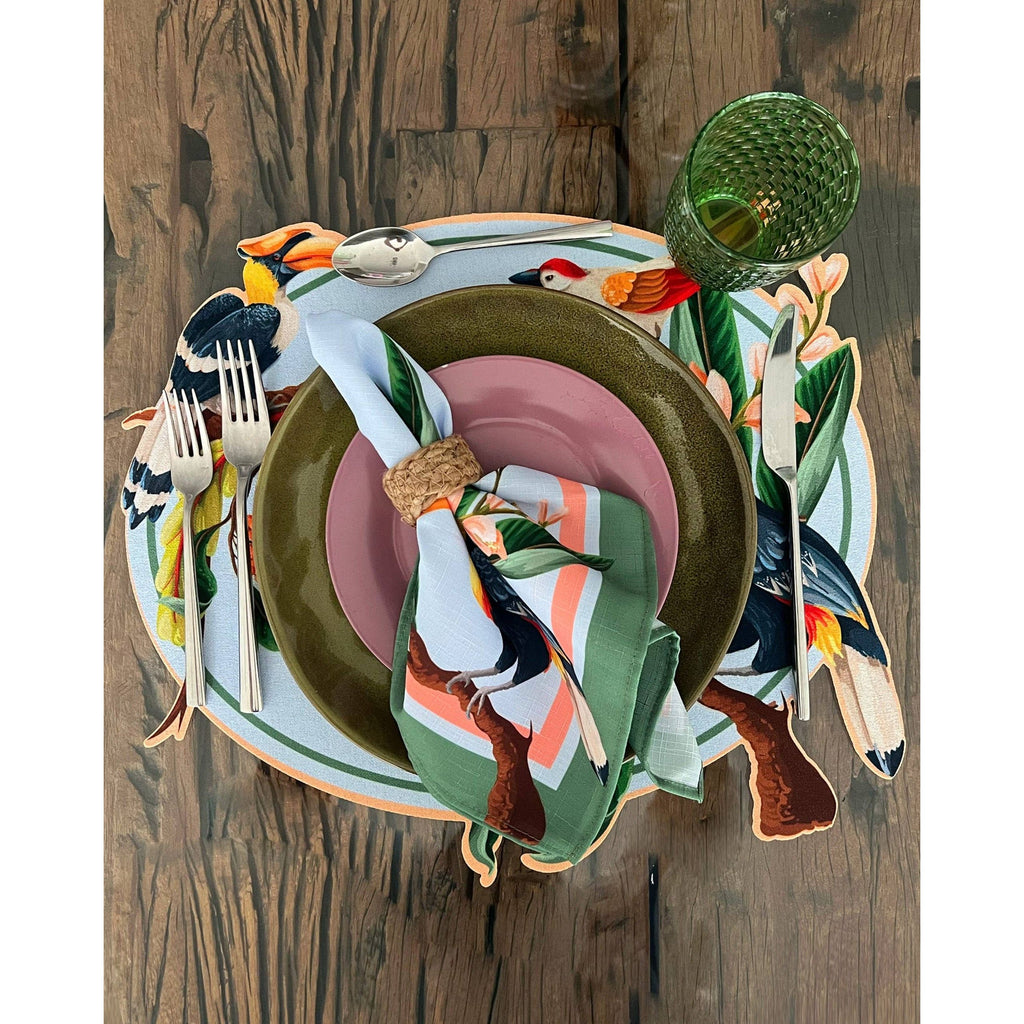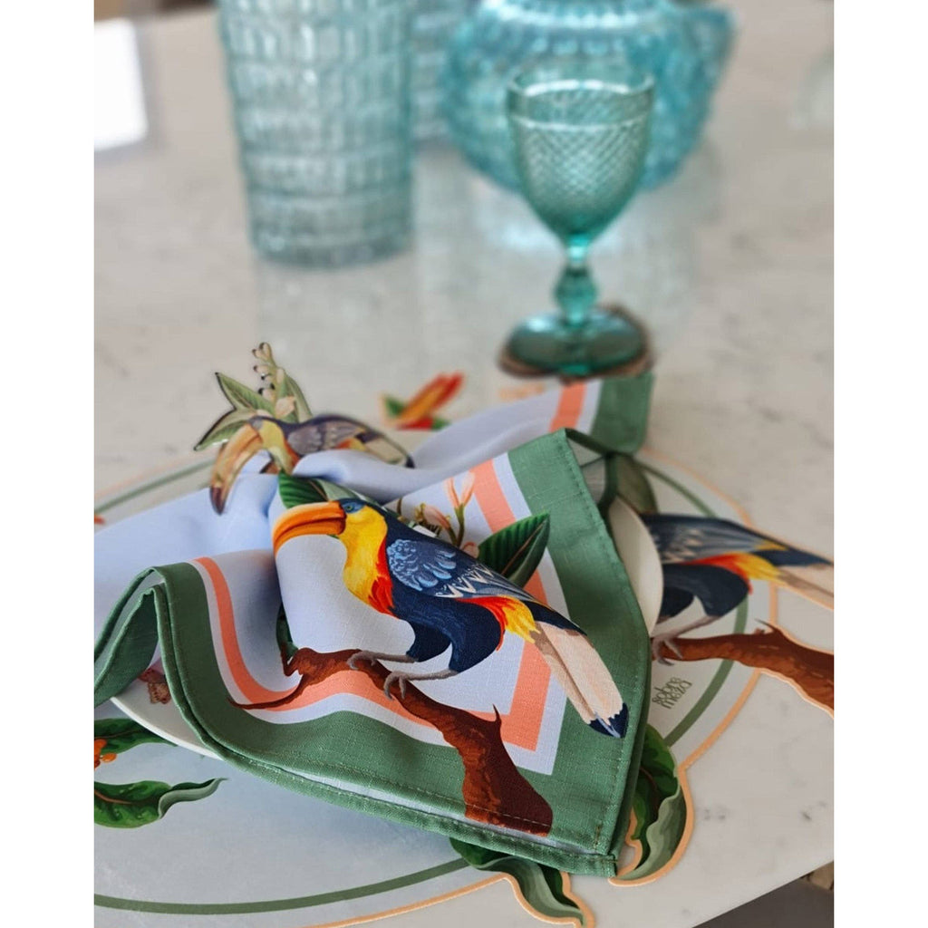 Let your table come alive with our Wild Easy-Care Napkins. Showcasing exotic birds and vibrant flowers, these napkins create a captivating and untamed dining ambiance. Crafted with meticulous attention to detail and easy care in mind, they effortlessly enhance your dining experience. Each set includes six napkins, perfect for adding a touch of adventure to your gatherings. Elevate your meals with these extraordinary napkins, infusing your table with the beauty of the wild.